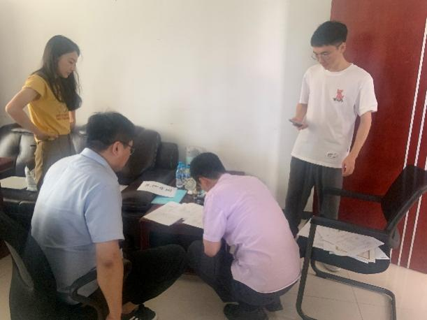 7月24日,东丽区调查登记中心工作人员如约来到华明高新区爱思达航天科技公司现场,办理新建厂房和办公楼的房屋所有权首次登记,指导企业填写申请材料、整理登记要件、核对材料一致性并整理完毕后,由企业现场加盖公章、经办人签字,扫码缴纳登记费后,完成受理工作。