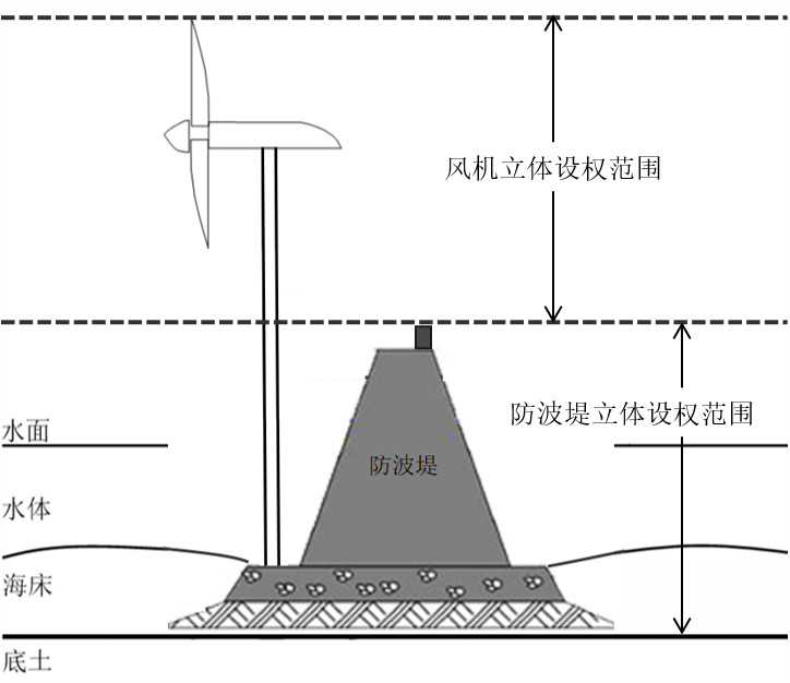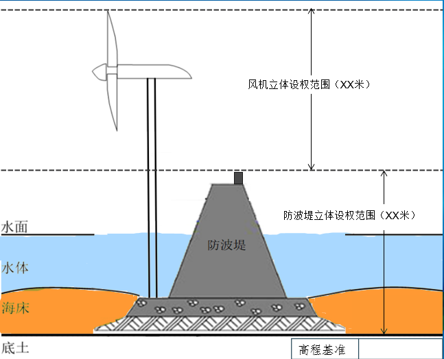 实际使用高程)至构筑物最低点高程。其余构筑物用海立体设权范围为构筑物