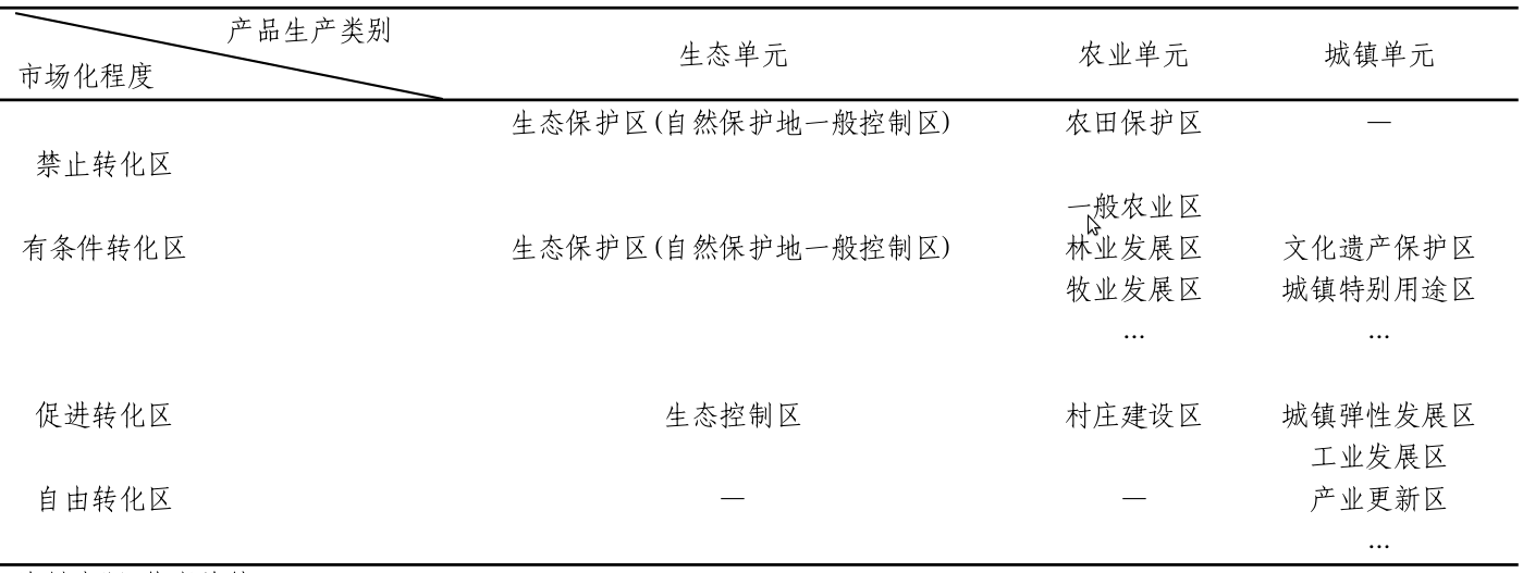 表3 以市场化程度和产品生产类别划定功能分区