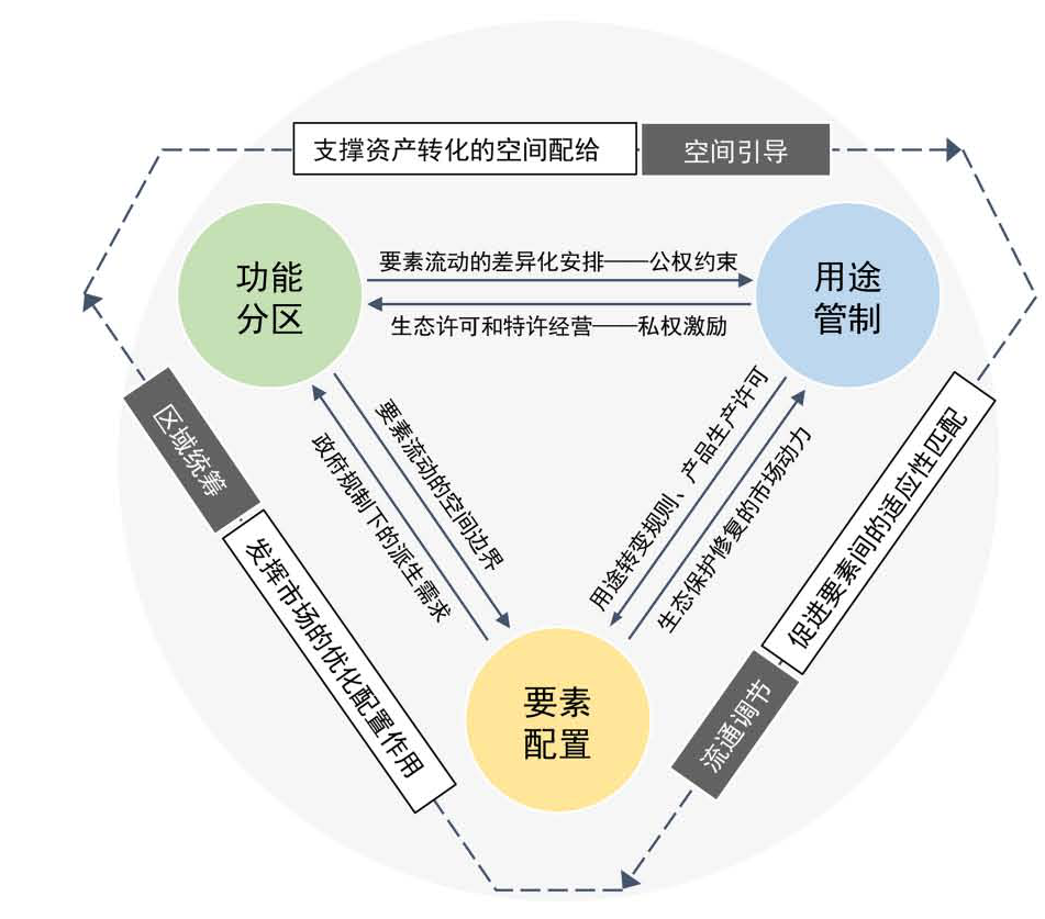 面向需求侧,减小要素流动障碍,避免市场盲目性引起的要素资源浪费。市场机制不是万能的,生态产品的稀缺性和外部性决定其流动性需要国土空间规划进行分区分类的约束。对应不同功能分区,用差异化的空间政策行使政府职责,为市场机制在其有效领域发挥作用提供支撑,激励自然资源要素的合理高效流动。