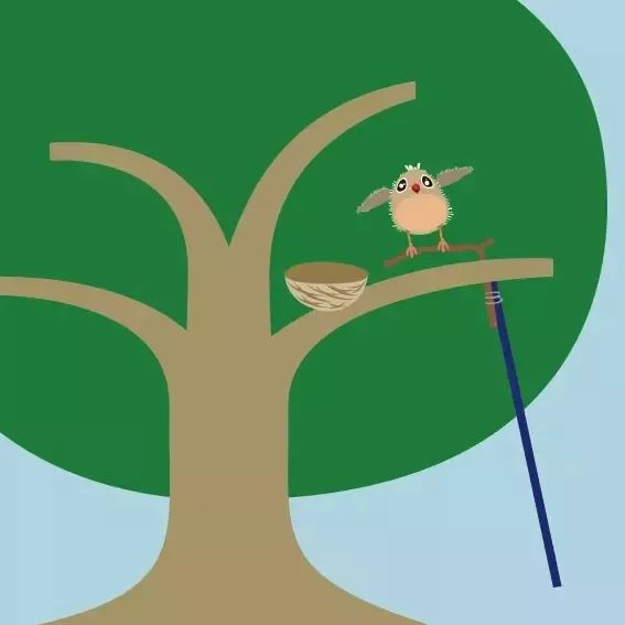 借助梯子或长杆将幼鸟送回树