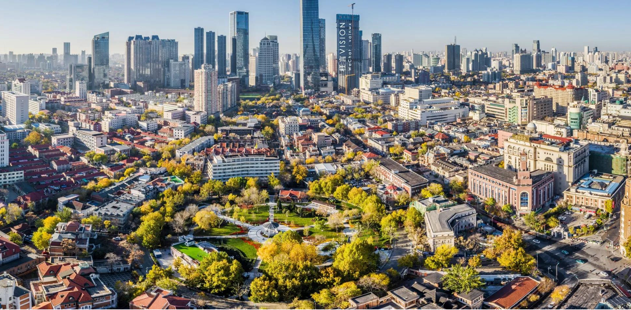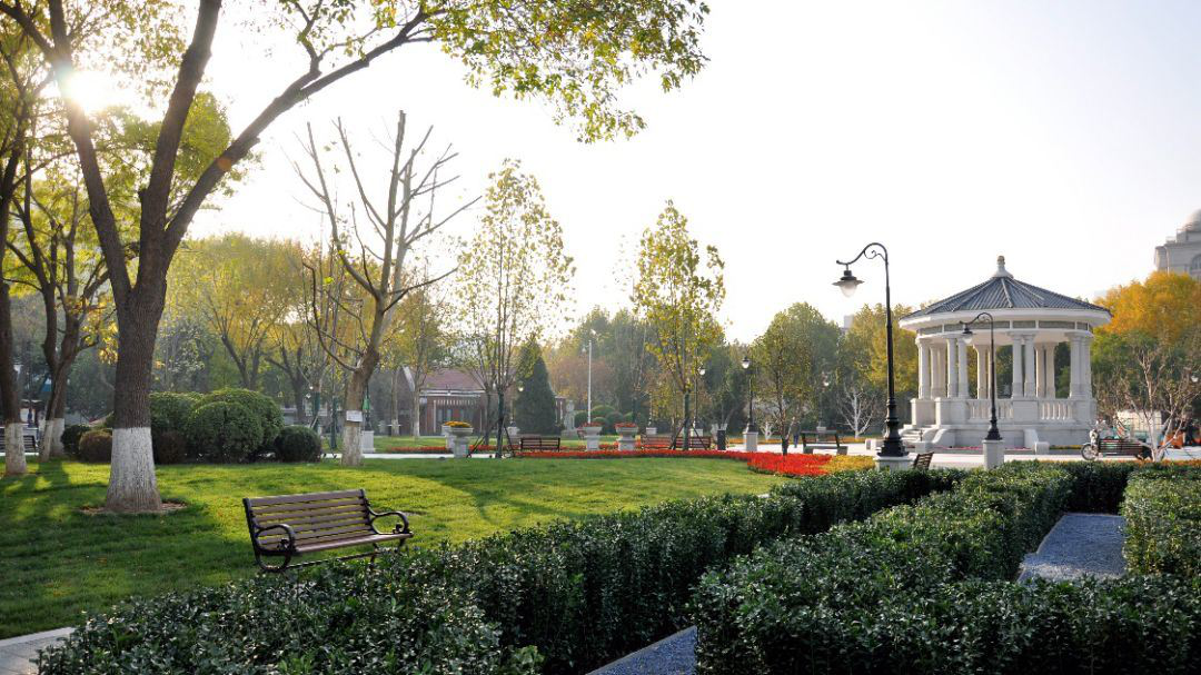 中心花园历史文化街区位于天津市和平区核心地带,是以放射状路网格局及花园别墅为典型特征的、具有法式风貌特征的商业文化街区。