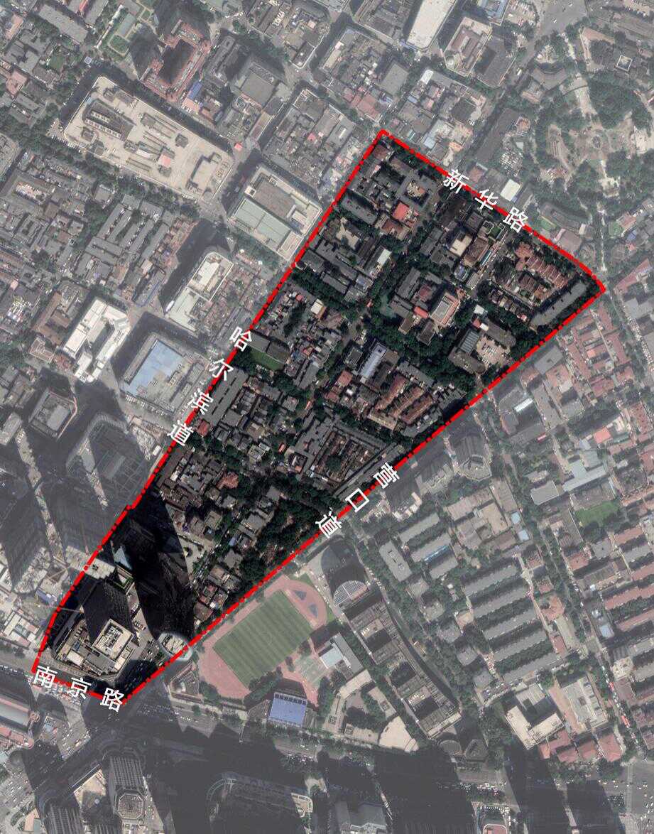 赤峰道街区以赤峰道为轴,由西侧哈尔滨道和东侧营口道相交所围成。区内由赤峰道、承德道、山东路、河北路、河南路、山西路和陕西路组成两纵五横的路网骨架,整体上延续了法租界高档居住区窄路密网的空间尺度和舒适的居住环境。街区内1949年以前的建筑占建筑总量的60%以上,主要以独立式住宅和里弄式住宅为主,风格与形式多样。里弄与街巷空间连续并富有变化,围墙与院落等形式多样,环境氛围舒适。