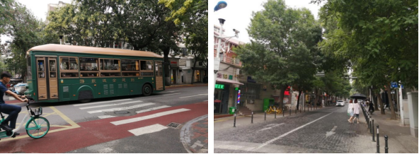 赤峰道历史文化街区作为紧邻中心花园的生活街区,其开放空间主要由赤峰道、河北路、山西路等街道构成。这些街道大多具有良好的商业氛围,沿街店铺琳琅满目,街道两侧绿树成荫、尺度宜人、适宜步行。2019年我市针对赤峰道、河北路等多条街道实施了慢行改善工程,通过优化道路断面、调整非机动车路权、铺设可视化彩色涂装路面等措施,有效改善区域内交通通行环境,为商业氛围的优化提升起到了积极的作用。