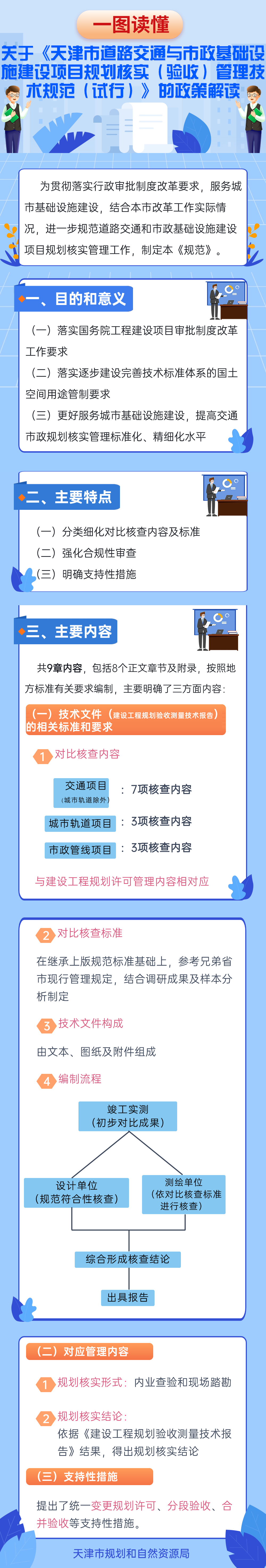 【一图读懂】《天津市道路交通与市政基础设施建设项目规划核实(验收)管理技术规范(试行)》