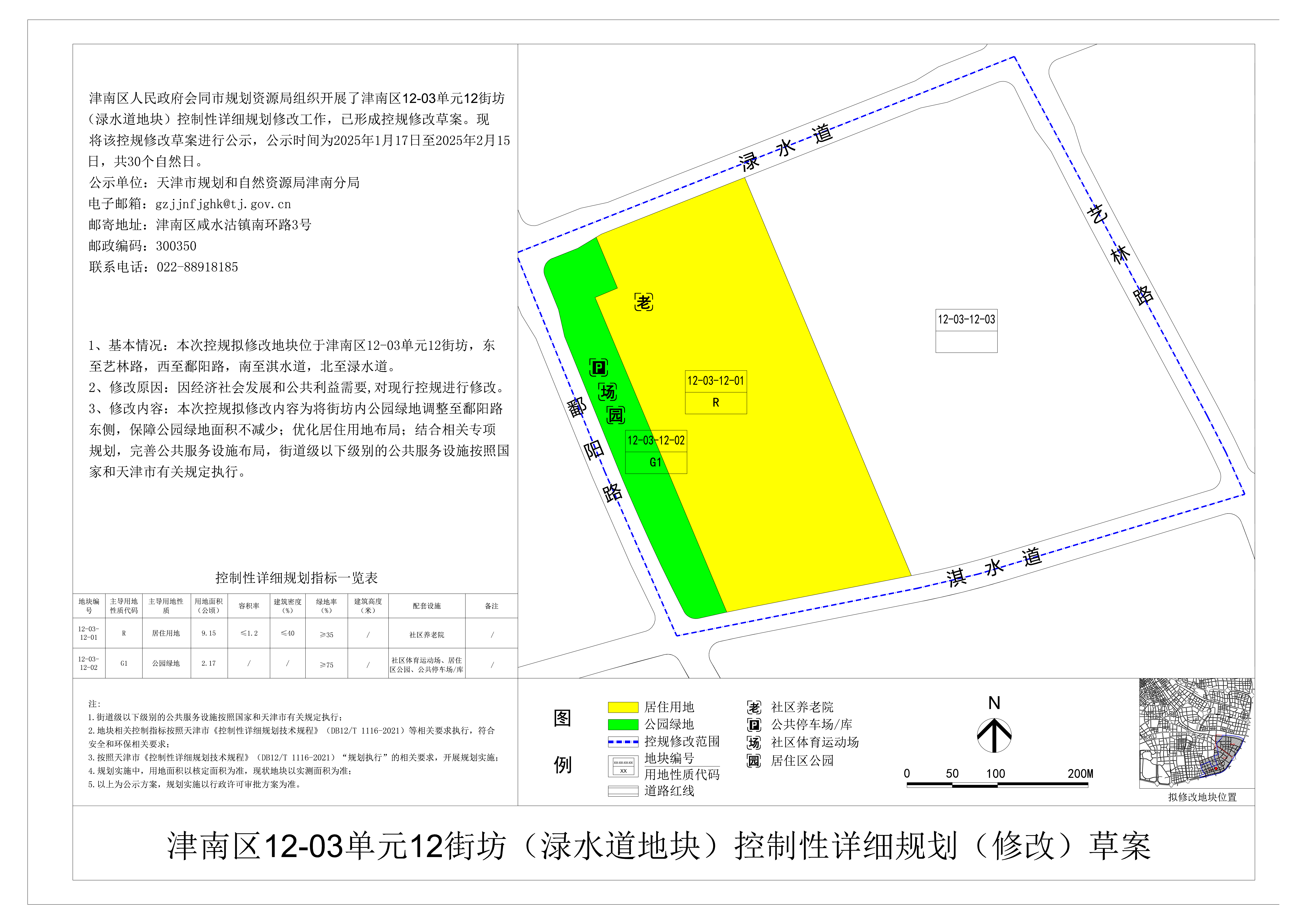 (津南区)关于12-03单元12街坊(渌水道地块)控制性详细规划修改草案的公示