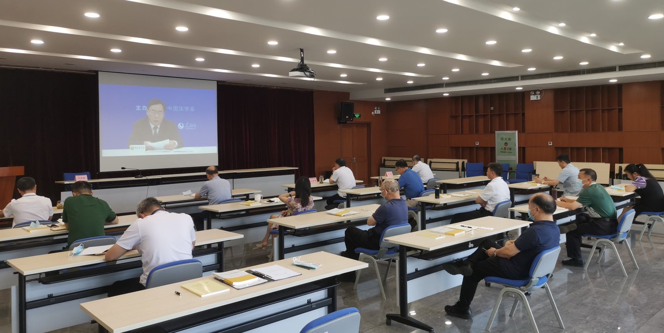 本次专题学习,依托《习近平法治思想概论》、《习近平法治思想学习纲要》等重点教材,集体观看了由中国法学会党组成员、学术委员会主任张文显在人民网作的学习贯彻习近平法治思想报告会专题视频报告。会后,党委理论中心组成员进行了交流研讨。